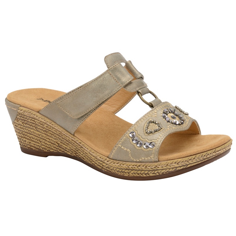 Product Name: Dunlop - Pale Gold 'Hazel' Ladies Wedge Sandals