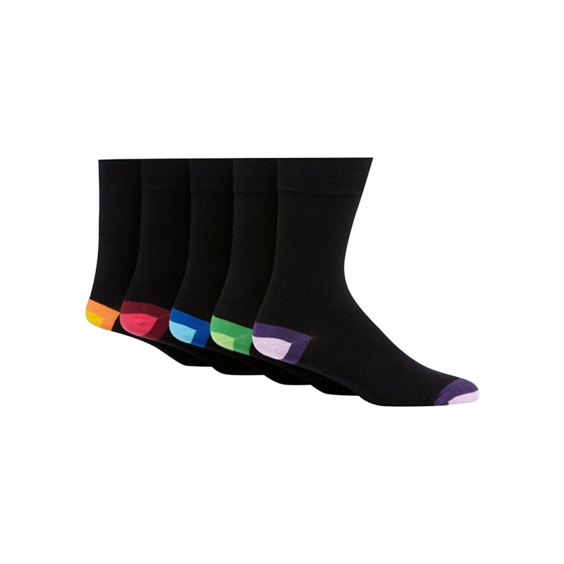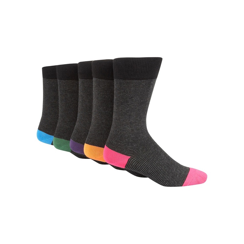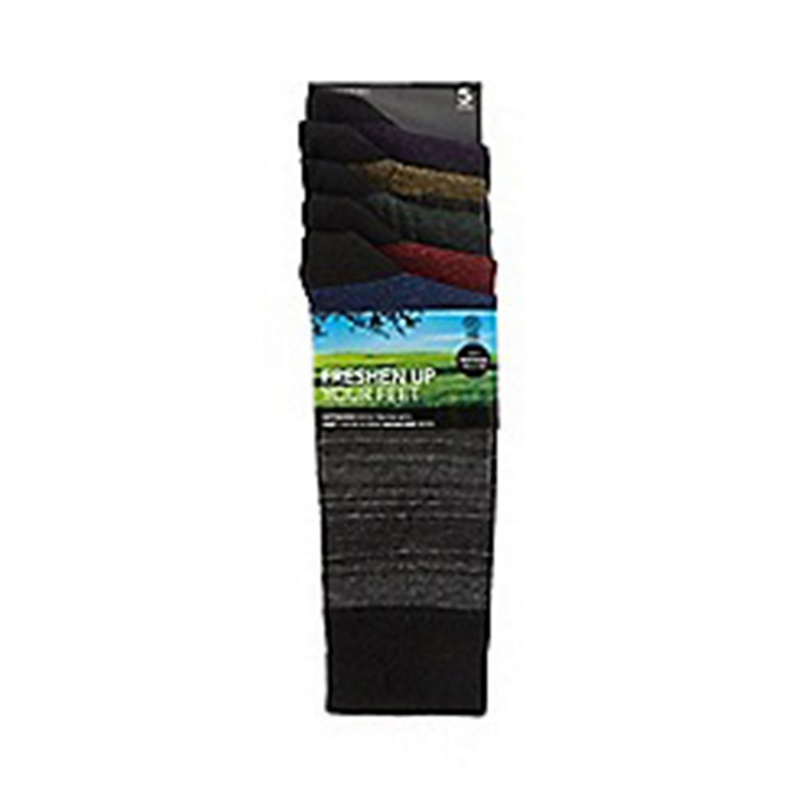 This pack of five black striped tip socks from Freshen Up Your Feet feature all over ribbed designs with green and grey, light blue and grey, purple and grey, bright blue and grey and red and grey tips. These cotton rich socks use revolutionary antimicrobial technology to keep socks fresh, moisture management properties to keep feet dry and 'Aegis' technology for odour-free wear. Size:L Colour:Black