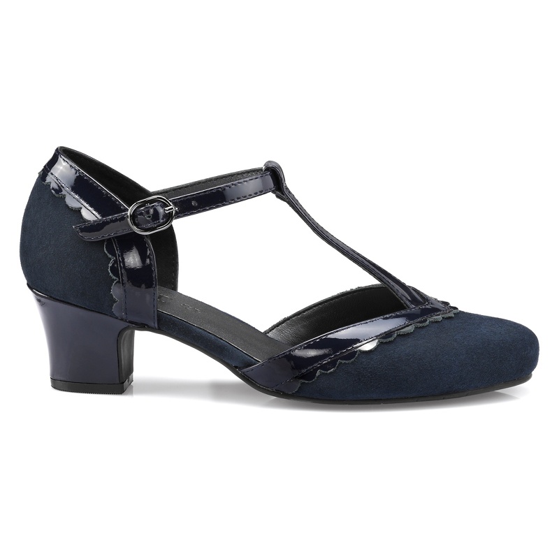 A gorgeous formal leather shoe with mid-height heel, delicate T-bar strap with adjustable buckle, cushioned insole and pretty scalloped edging; Viviene is the perfect party heel. Size:7 Colour:Black Patent