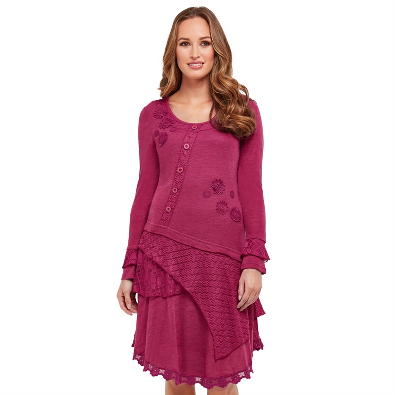 Enjoy our new and updated versatile cami with a laid-back crinkle look, lace trim and button detail. It's an old favourite with a new twist. Approx Length: 60cm Size:16 Colour:Dark Pink