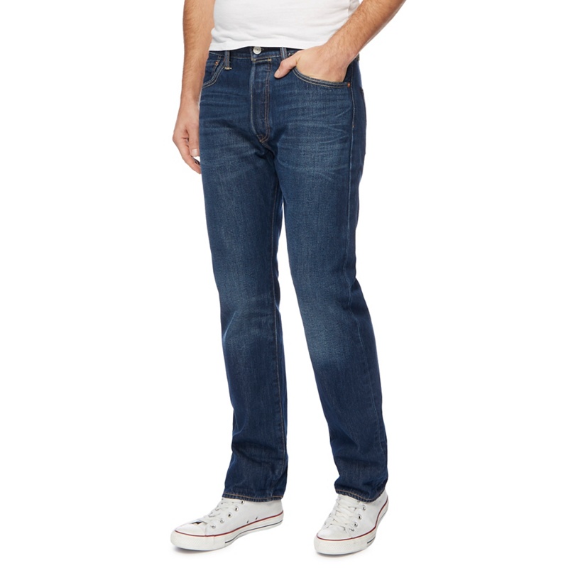 Women's high-waisted 501 skinny jeans from Levi's. Cut from stretch denim with a skinny fit through the seat and thigh, the iconic 501® Original jeans have been redesigned and customised with a slimmer leg and versatile length. The acid wash, high-rise jeans sit above the waist and feature a button fly, copper-tone rivets and skinny legs with frayed cuffs. Classic five pocket styling and branded leather patch to the rear waistband complete the design. Arcuate stitching to both rear pockets and branded Levi's tab to right. Belt loops and V-shaped yoke. 97% Cotton, 2% Polyester, 1% Elastane Model is 168cm/5'6 and wears a size W26/L30.