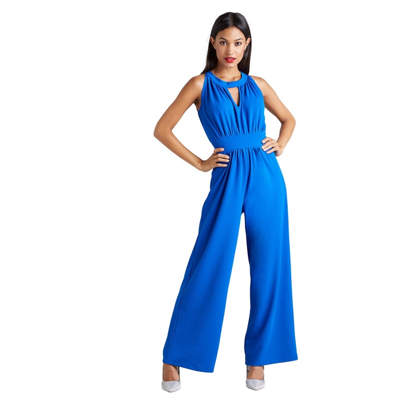 Shimmer, sparkle and shine in this jumpsuit. Designed with jewelled embellishments along the waist, it has structured pleats a V-neckline, cap sleeves and a zip fastening down the back. Size:10 Colour:Black