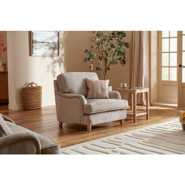Our Ashby armchair, shown here in cream, is perfect for curling up on with a good read and a hot drink. The cosy, deep seat and elegant scroll-top arms make this armchair perfect for use as an accent piece, or team with one of our sumptuous Ashby sofas and a footstool for a truly coordinated living room look.