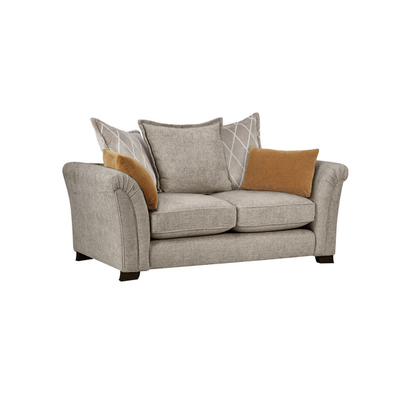 Our Ashby pillow back loveseat, shown here in stone, is perfect for curling up on with a good read, a hot drink, and maybe even someone to snuggle with. It comes with two back pillows that match the sofa fabric, one bolster, and one decorative scatter cushion for added comfort and support. The cosy, deep seat and elegant scroll-top arms make this loveseat perfect for use as an accent piece, or team with one of our sumptuous Ashby sofas and a footstool for a truly coordinated living room look.