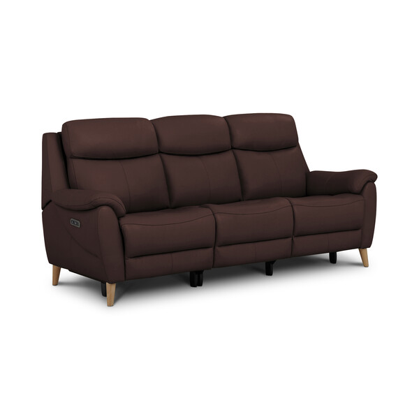 Create an instant sleek and stylish home cinema with the Brunel leather 3-seater recliner sofa. The exclusive design offers upper and lower power reclining via an easy-access control panel. With a drop-down centre seat featuring two cup holders, a pair of plug sockets and a handy USB charging port for all your daily devices, Brunel has everything you need for the perfect movie night in. The range is upholstered in high-quality leather with solid oak tapered legs adding a sophisticated finish.