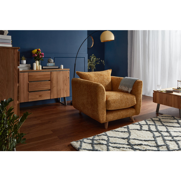 Our Dalby loveseat, shown here in gold, will add a touch of fun, modern design to your living room. Characterised by a trimmed back pillow, plump scatter cushion, and splayed beech feet, our loveseat is available in a diverse range of block colours, so you can snuggle up in style whether you prefer serene neutrals or cheerful brights. With a sturdy frame and comfortable seat padded with foam Encore technology, our loveseat can be added to your existing furniture, or browse the rest of our Dalby range and treat yourself to a truly coordinated living room suite.