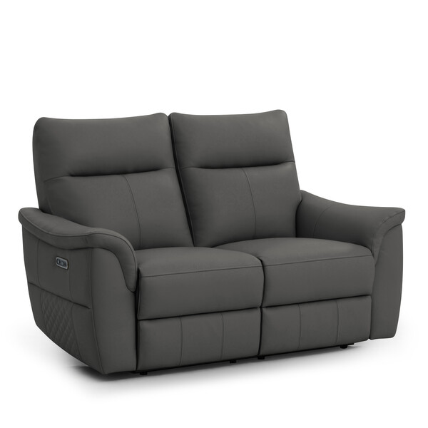 Product Name: Elephant Grey Leather Sofas - 2 Seater Electric Recliner Sofa - Dune Range - Oak Furnitureland