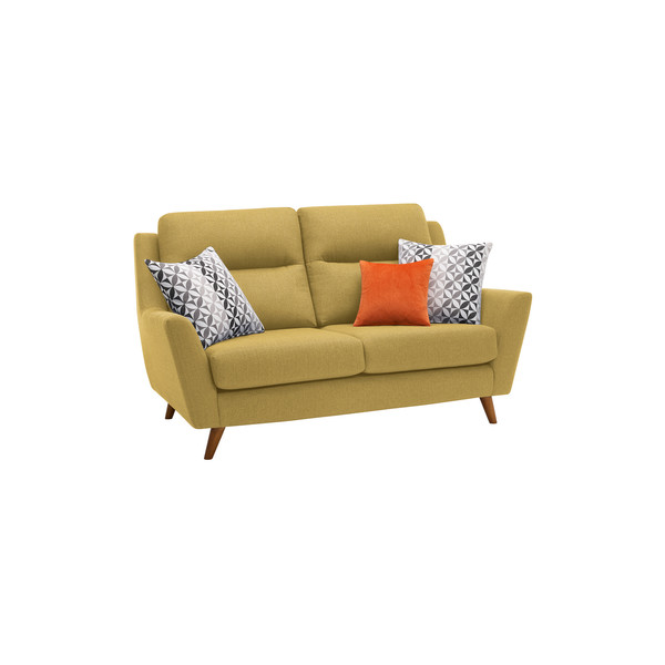 Fresh and modern two seater sofa in Lime fabric Smart button back complemented by cosy and colourful scatter cushions Scandi-style oak legs Fibre-filled back cushions for comfort, and supporting, foam-filled seats Sofa seat looks good for longer, with plump-free seat cushions Hardwood used in the frame for durability Furniture Guard cover available, giving extended five-year guarantee Our two seater Evie sofa is smart, neat, and comfy. Smooth, plain durable fabric in a choice of seven colours looks great with colourful accent scatter cushions. Evie has a button back and slender oak legs. The seat cushions are plump-free, and keep their shape for longer, looking neat with no effort. Feel luxurious levels of comfort with the fibre-filled back cushions. Theres lots of choice and style in the Evie range have a browse online.