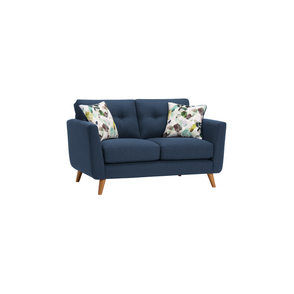 Three seater sofa, Scandi style in Blue fabric Neat button back, and cosy scatter cushions for extra comfort and colour Slender oak legs Sink-in comfort with fibre-filled back cushions, and foam-filled seat for support Sofa seat looks good for longer, with plump-free seat cushions Durable hardwood used in the frame Extended five-year guarantee available with Furniture Guard cover Smart three seater sofa with Scandi lines. Close-woven durable fabric, with a choice of seven colours. Button back and slender oak legs are just right for the modern home. Two scatter cushions add a splash of colour. Plump-free seat cushions keep their shape for longer, and keep the sofa looking neat with no effort. Back cushions are filled with fibre for luxurious levels of comfort and support. Look through the Evie range of sofas, chairs, and footstools. Theres lots of choice, lots of style.