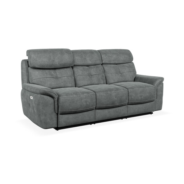 Product Name: Plush Silver Fabric Sofas - 3 Seater Electric Recliner Sofa with Power Headrests - Iver Range - Oak Furnitureland