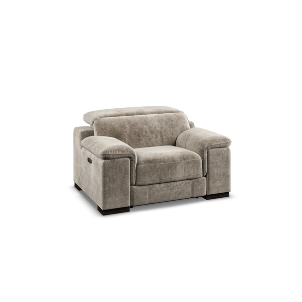 Product Name: Descent Taupe Fabric Sofas - Electric Recliner Armchair with Power Headrest - Juliette Range - Oak Furnitureland