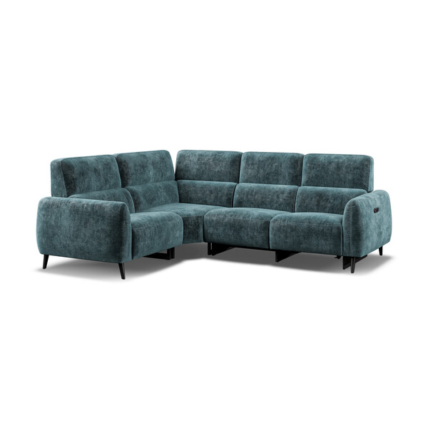 Whether you prefer to snuggle up with loved ones or stretch out in your own space, the Juliette corner recliner sofa will add style, sophistication and luxurious comfort to your living room. With gently curved arms and slim black metal feet, this L-shaped sofa is well-suited to modern interiors with warm styling, perhaps with bronze or brass accents. On each arm is a set of buttons and a handy USB port. The buttons control the headrest and footrest, as well as reset the seating position of each recliner, while the charging points allow you to power up your devices while you power down.