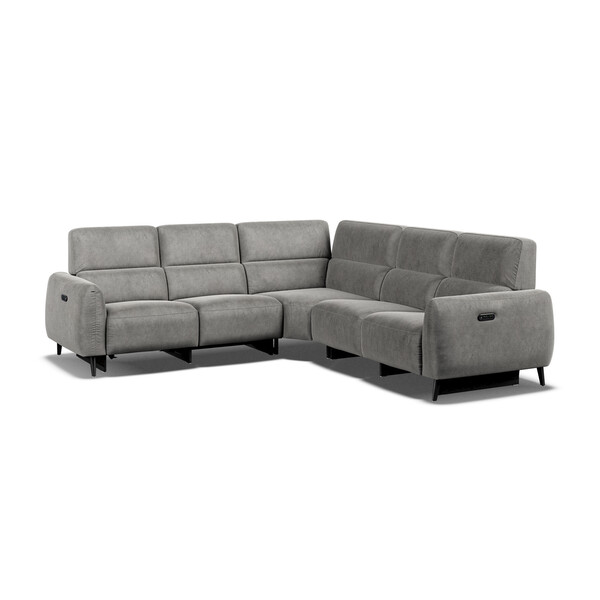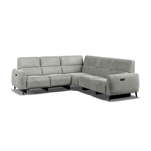 Product Name: Descent Pewter Fabric Sofas - Large Corner Recliner with Adjustable Headrests - Juliette Range - Oak Furnitureland