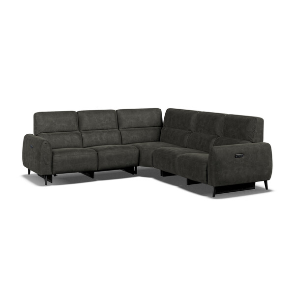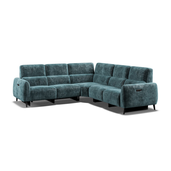 Whether you prefer to snuggle up with loved ones or stretch out in your own space, the Juliette corner recliner sofa will add style, sophistication and luxurious comfort to your living room. With gently curved arms and slim black metal feet, this corner sofa is well-suited to modern interiors with warm styling, perhaps with bronze or brass accents. On each arm is a set of buttons and a handy USB port. The buttons control the headrest and footrest, as well as reset the seating position of each recliner, while the charging points allow you to power up your devices while you power down.