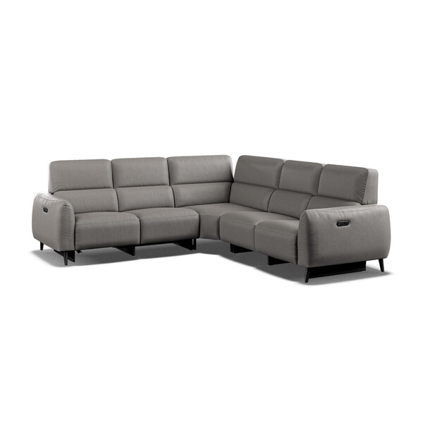 Whether you prefer to snuggle up with loved ones or stretch out in your own space, the Juliette corner recliner sofa will add style, sophistication and luxurious comfort to your living room. With gently curved arms and slim black metal feet, this corner sofa is well-suited to modern interiors with warm styling, perhaps with bronze or brass accents. On each arm is a set of buttons and a handy USB port. The buttons control the headrest and footrest, as well as reset the seating position of each recliner, while the charging points allow you to power up your devices while you power down.