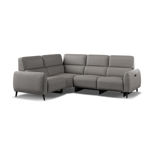 Product Name: Elephant Grey Leather Sofas - Corner Double Power Recliner Left Hand with Power Headrest - Juliette Range - Oak Furnitureland