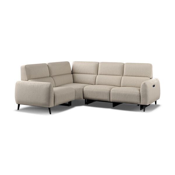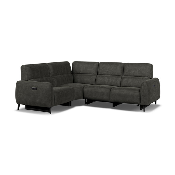 Whether you prefer to snuggle up with loved ones or stretch out in your own space, the Juliette corner recliner sofa will add style, sophistication and luxurious comfort to your living room. With gently curved arms and slim black metal feet, this L-shaped sofa is well-suited to modern interiors with warm styling, perhaps with bronze or brass accents. On each arm is a set of buttons and a handy USB port. The buttons control the headrest and footrest, as well as reset the seating position of each recliner, while the charging points allow you to power up your devices while you power down.