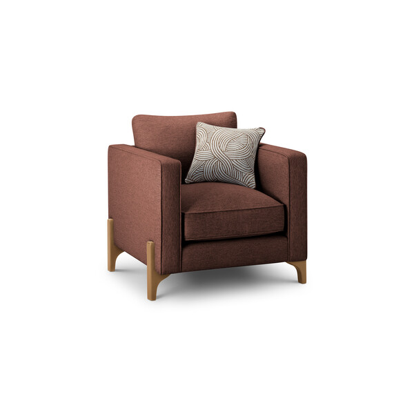 Perfect for smaller living spaces and cosy nooks, our Jude armchair is designed with beautiful mid-century style and comfort in mind. The exclusive range is elevated on exposed beech wooden legs, available in either a walnut or natural finish. Other features that add to Jude's sophisticated look include tall box arms and comfortable sink-in cushions with piping detail, plus two complementary statement scatter cushions. Choose from soft textured or rich velvet-feel upholstery options for an effortless match to your home's unique aesthetic.
