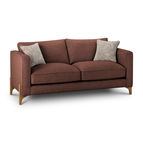 Our mid-century Jude 3-seater sofa is the ideal cosy addition that instantly brings beautiful modern style to your living room. Featuring exposed beech wooden legs in either a walnut or natural finish, and soft textured or rich velvet-feel upholstery options, the exclusive design is easy to match to your home's decor. Piping detail frames Jude's tall box arms for extra sophistication, while comfortable sink-in cushions and two complementary statement scatter cushions complete its contemporary look.