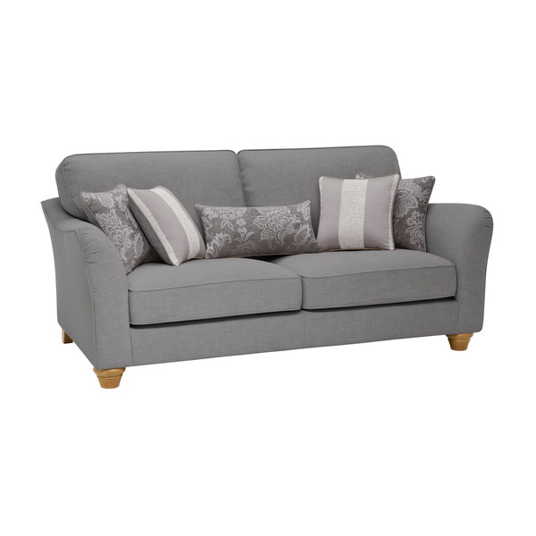 The perfect finishing piece for any living room, the Regency armchair adds an easy air of elegance. It's upholstered in a cosy high quality fabric, with a complementary, feather filled striped scatter cushion to complete the style. The deeply padded arms flare gently to help maximise the seating area, and the seat cushion itself boasts our exclusive plump-free filling for comfort and easy maintenance. The armchair styling is finished with beautiful turned solid oak feet for a classic feeling. Browse the rest of our Regency range today to find other great matching pieces and don't forget about our great delivery options.