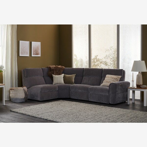 Showcasing neat, modern design that's available in four sophisticated shades, our modular Samson 3-seater recliner sofa, shown here in Amigo granite, slots easily into any colour scheme or interior style. The range benefits from high-quality lumbar support and a high back, making it an extremely comfortable place to relax, alone or with loved ones. Made up of three modules, one middle and two recliners, all with serpentine sprung seats and fixed cushions, weight is always distributed evenly to prevent sagging, while the soft yet hard-wearing polyester upholstery is ideal for snuggling into and will withstand whatever day-to-day life throws at it. At either end of this sofa is an electric recliner seat that can be operated by buttons on the arms. Next to each set of controls is a USB port, so you can rest for long periods of time, charging your devices as you use them. Make the modular Samson 3-seater recliner sofa the star of your existing furniture, or browse the rest of the range for a coordinated living room suite.