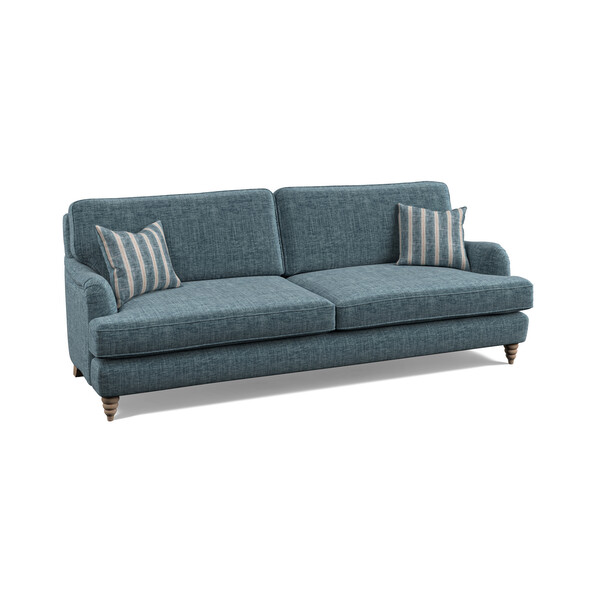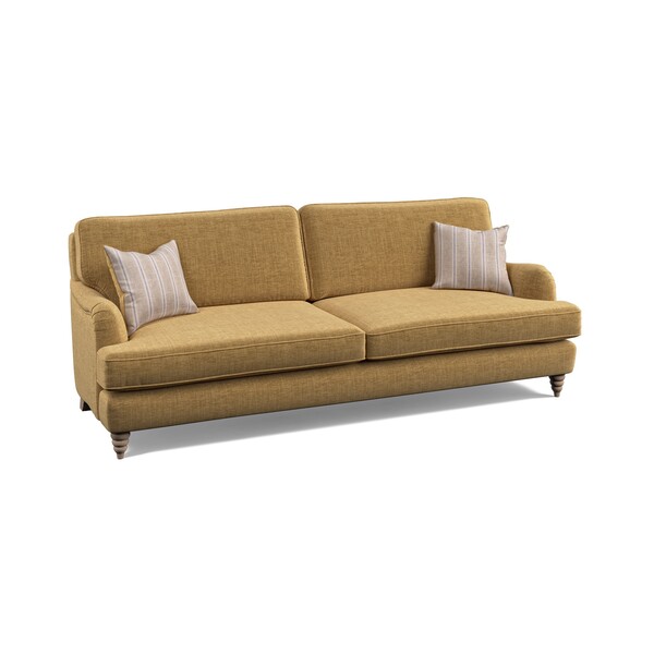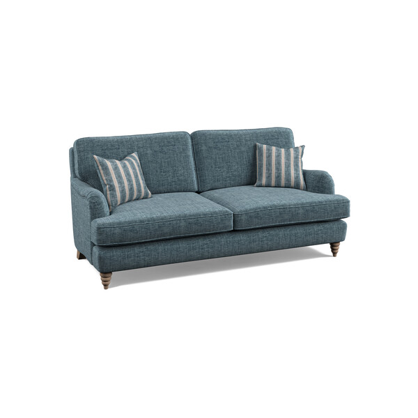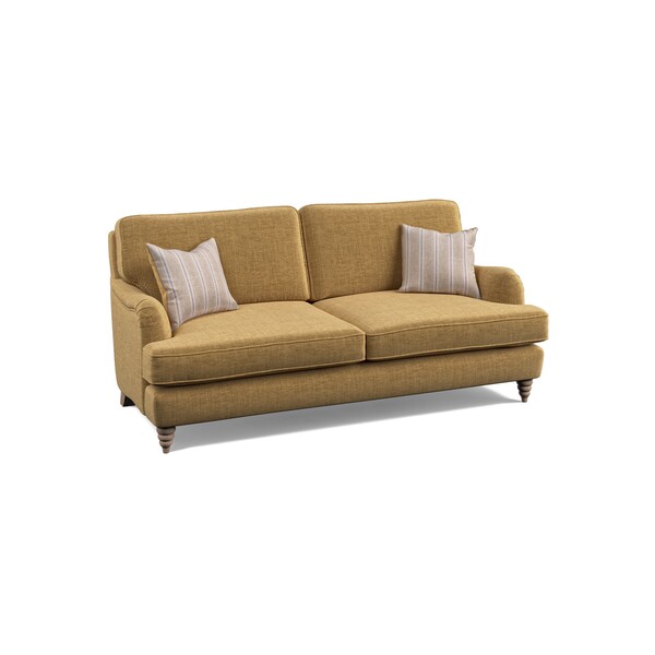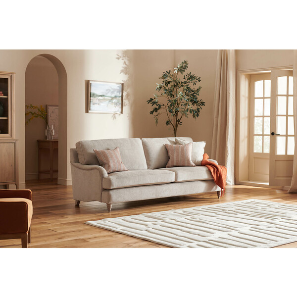 With its timeless style, discover the beauty of heritage design with the Stanmore 3-seater sofa. With its low pleated curved arms, solid oak spun feet and complementary striped scatter cushions, enjoy beautiful detailing that gives your living space a visual lift. Upholstered in a super-soft woven fabric, choose from six subtle colourways for easy-to-match elegance. Love Stanmore? Browse our Newton natural oak furniture range for matching modern farmhouse style.