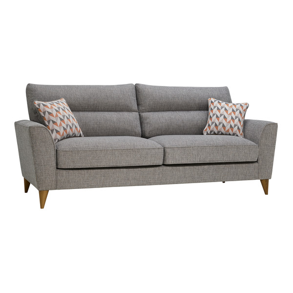 Jensen is a modern, clean design Medium height arms and high back Tones of colour in tactile, woven upholstery Slender, tapered oak legs Back is fibre filled for luxury and comfort Seat has foam filling for support and shape retention Hardwood is used in the frame Fully compliant to UK Flammability Standards BS5852 Extended five-year guarantee option with Furniture Guard cover The Jensen four seater sofa has a Scandi influence, seen in the pale oak legs, clean lines, and warm, tactile Silver fabric upholstery and Coral accent. Available in three main colours, the geometric accent pattern comes in a fresh coral or lemon zest. Style and comfort work together well in this range. The back cushions have a simple stitched line to keep comfy fillings in place, and keep Jensen looking good. It's a versatile set of sofas, with a lightness of look. There's a circular accent footstool to complete the set it's a great way to bring some Scandi style into the home.