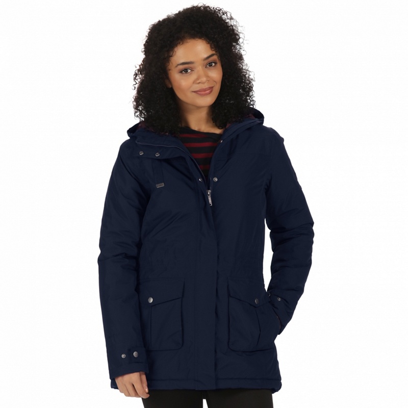 The women's 'Schima' parka from Regatta made of soft-touch HYDRAFORT fabric with a DWR (durable water repellent) and sealed seams to protect in wet or snowy conditions. Cut mid-thigh length with quick-drying Thermo-Guard insulation and features warming fleece panels. With fine quality faux-fur trims and the 1981 heritage badge on the left sleeve. Size:10 Colour:Black