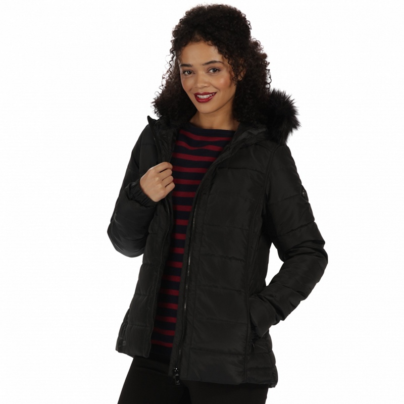 The women's 'Wynne' jacket from Regatta is made of soft-touch polyester lightly quilted with warming Thermo-Guard insulation. With a fine-quality faux fur trim hood, a tonal zip fastening and the 1981 heritage badge on the left sleeve. Size:18 Colour:Green