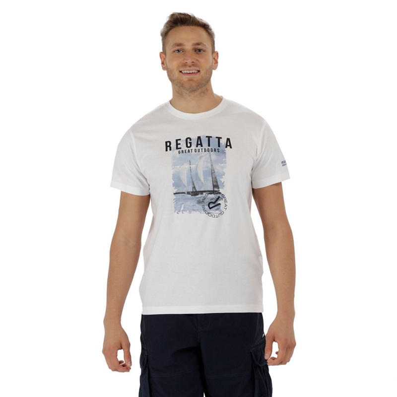 The men's Cline shorts Sleeved T-Shirt from Regatta is a made of lightweight coolweave cotton jersey fabric with an in-house print on the chest and a small Regatta tab on the hem. Size:XXL Colour:White