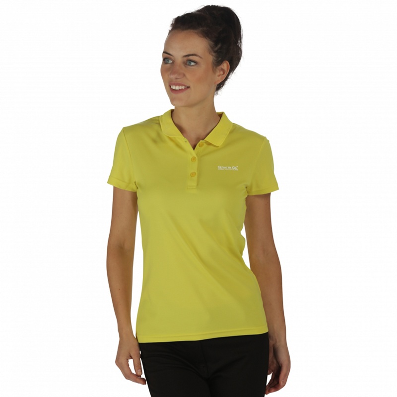 The women's Virda t-shirt from Regatta is made of light and airy, high-wicking polyester fabric with a self-fabric collar and internal neck tape. With the Regatta print on the chest. Size:16 Colour:Yellow