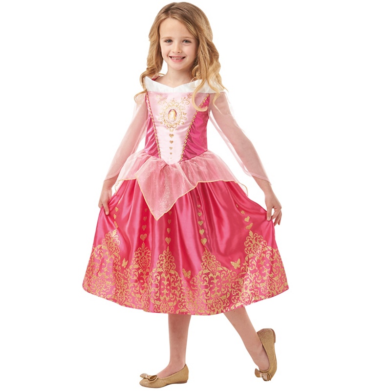 Love hearts and glass slippers adorn this delightful princess Cinderella dress. You ll fall in love with the tulle puff sleeves and peplum, sparkling details about the bodice, all framing a cameo of one little girl who s definitely going to the ball! Dress with Cinderella's iconic puff sleeves. Lam and satin bodice with character gem motif. Satin skirt with organza shimmer peplum and sparkly glitter detail. Size: Colour: