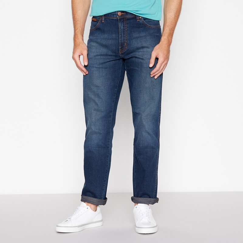 Refresh your casual collection with these 'Texas' jeans from Wrangler. In a mid blue wash with a faded design, they showcase stitched embroidery and iconic logo detailing - perfect for off-duty styling. Also available in big and tall sizes. Size:34R Colour:Blue