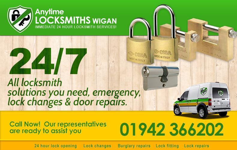 Anytime Locksmiths Wigan provide 24hr professional locksmith services for lockouts and other emergency and routine locksmith and security needs in Wigan WN1-8 and around Greater Manchester.